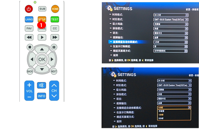 **可設置1或2小時不使用遙控器,系統將自動休眠,停播