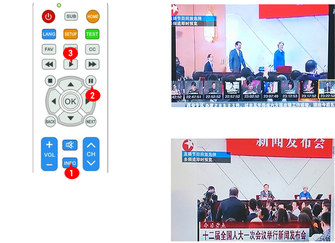 第一步:頻道直播時,按 鍵選擇“直播節目回放選擇”