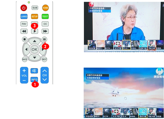 第一步:頻道直播時,按 鍵選擇“多頻道即時預覽”