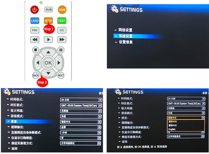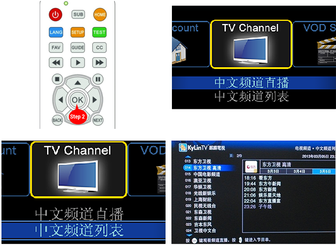 第一步: 在機頂盒首頁選擇“中文頻道列表”